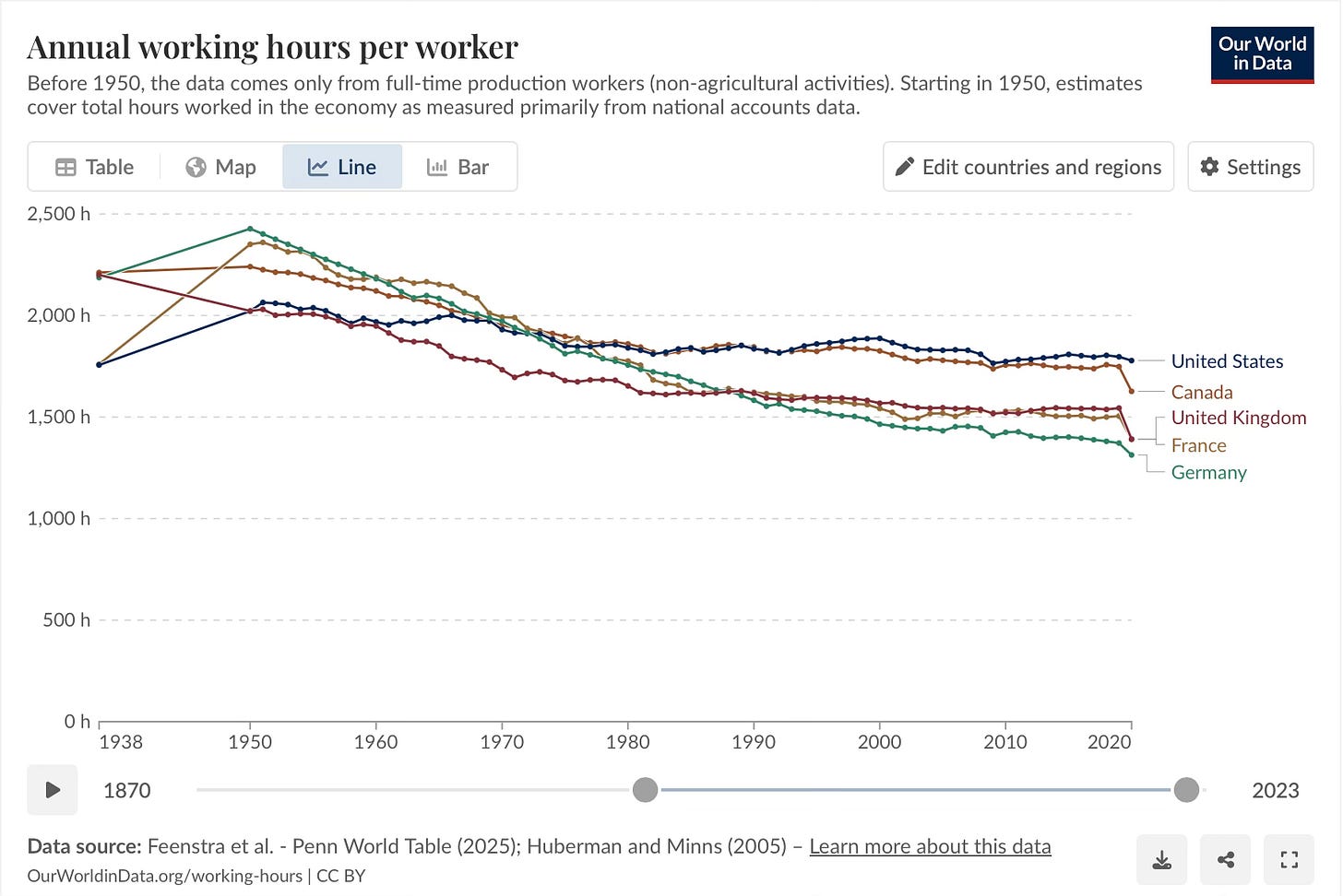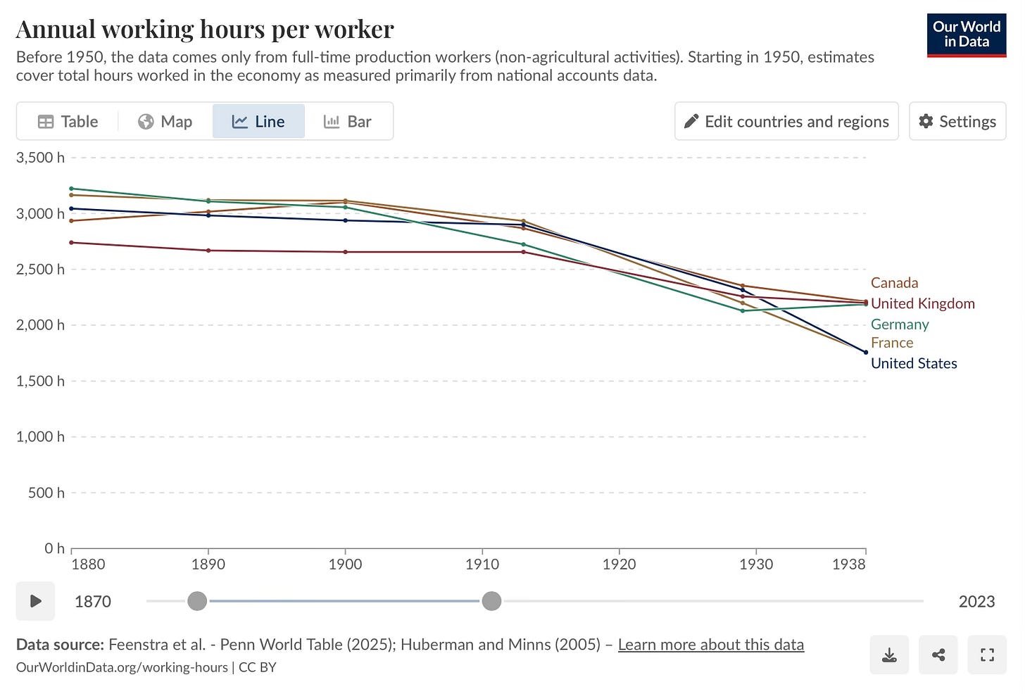 So imagine you know exactly how many hours per year you work. And answer this question: How does that compare with the hours worked per year of your grandfather? Or your great-grandfather? (Back in the day, it was mostly men in the workforce, so…)