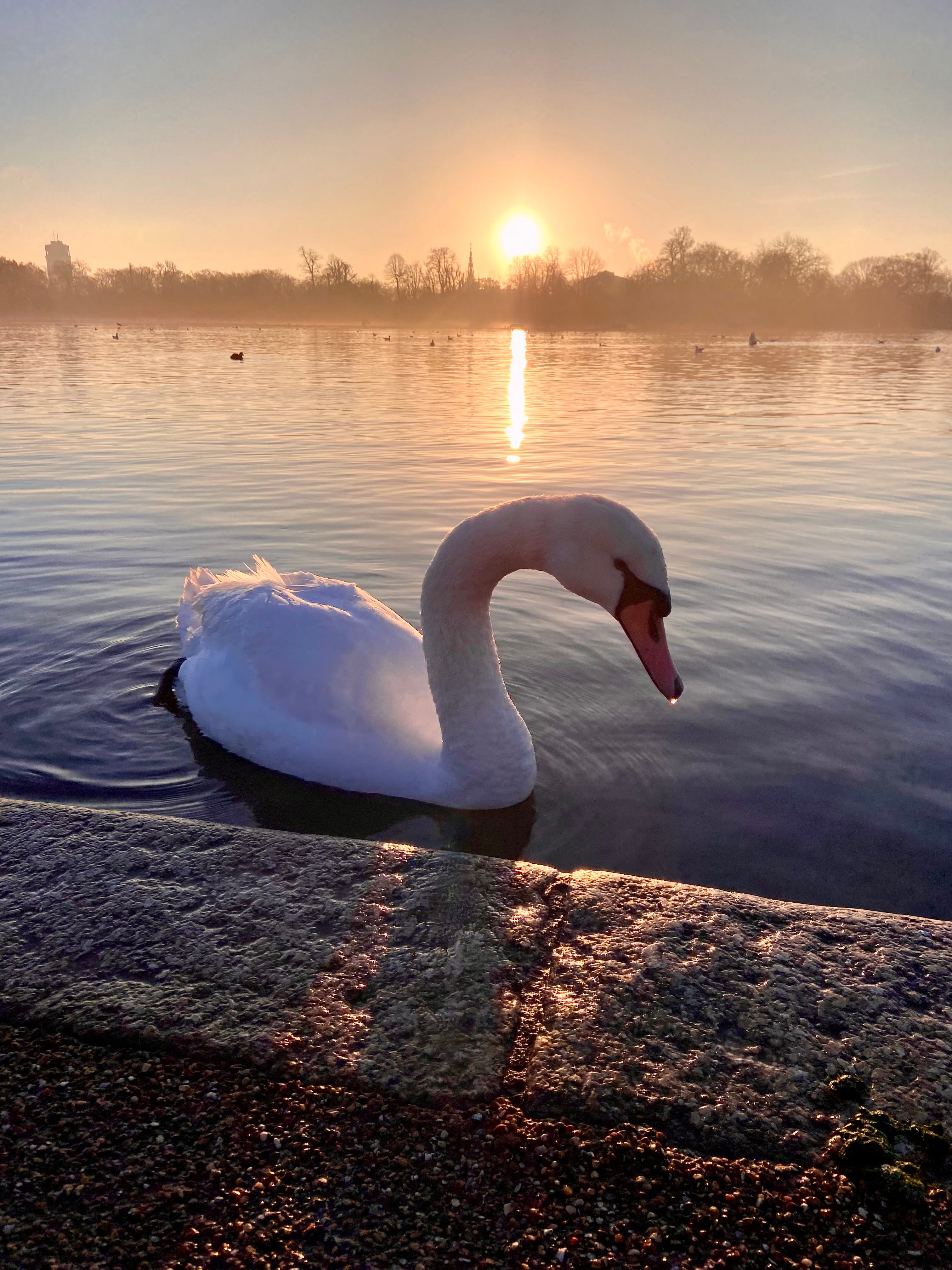 This one is not a trumpeter. It’s a mute swan, in London’s Hyde Park, on a crisp December morning two years ago.