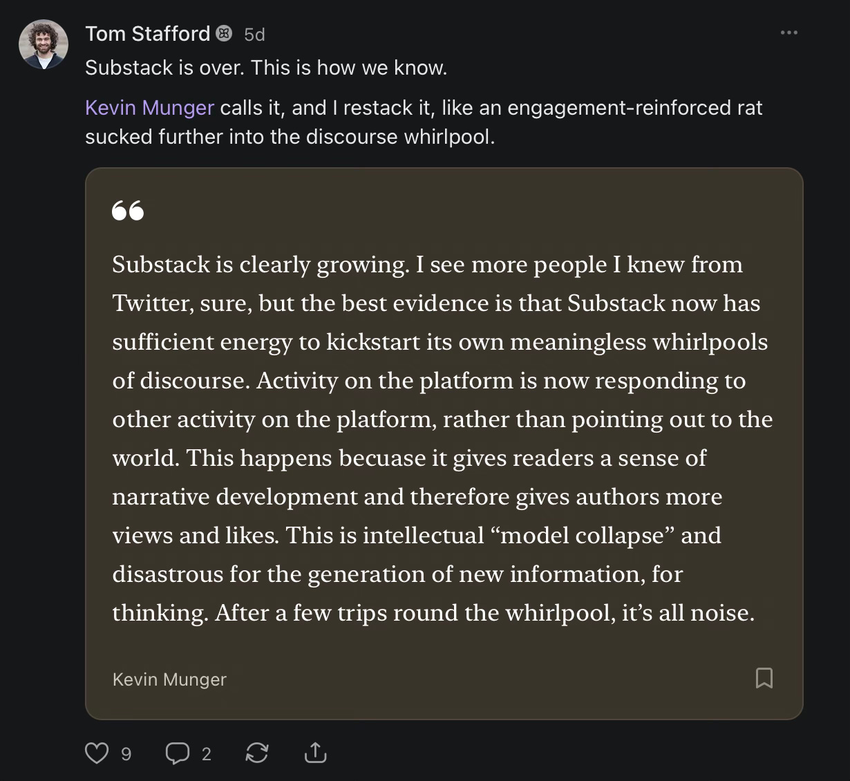 “Activity on the platform is now responding to other activity on the platform, rather than pointing out to the world,” noted Kevin Munger.